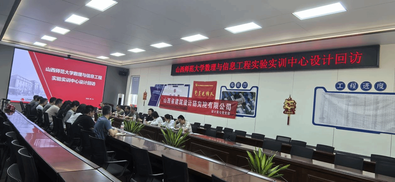 为深化党建与业务融合,充分发挥党员先锋模范作用,设计第七党支部结合“亮身份、树形象、践承诺”主题党日活动,组织党员先锋队成员及项目设计技术骨干赴山西师范大学数理与信息工程实验实训中心开展设计回访,以“党建+技术”双轮驱动,践行“长效服务,护航发展”的承诺。