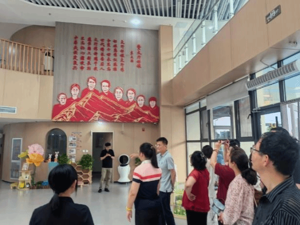 在活动期间,卫体局的领导亲自莅临托育中心的大厅,向在场的所有人讲述了门厅处"太行奶娘"这一红色经典故事。通过生动的语言,将故事中的情节和人物形象栩栩如生地展现在大家面前,生动展示了托育中心在"党建+业务"双轮驱动下的发展成果。