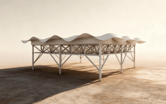 设计首先从建筑方案入手。考虑与设计主题的契合,经过多方案比选最终确定了我们的建筑方案。起伏的波浪设计灵感来源于历史的河流,象征着时间的流逝和文化的积淀。这些波浪不仅在视觉上给人以美的享受,更在功能上为考古遗址提供了必要的保护。波浪之间的凹陷区域,巧妙地象征着考古遗址的挖掘现场,为考古学家提供了一个既安全又舒适的工作环境。