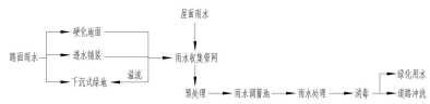本项目设置1座300m³的雨水调蓄池来储存雨水。区域内汇集的雨水通过管网转输至安全分流井,经过截污挂篮井的前期处理后,干净的雨水通过配水管进入蓄水池,通过雨水提升泵,将雨水提升至地埋式一体机进行处理,处理后的雨水用于景观绿化和道路浇洒。