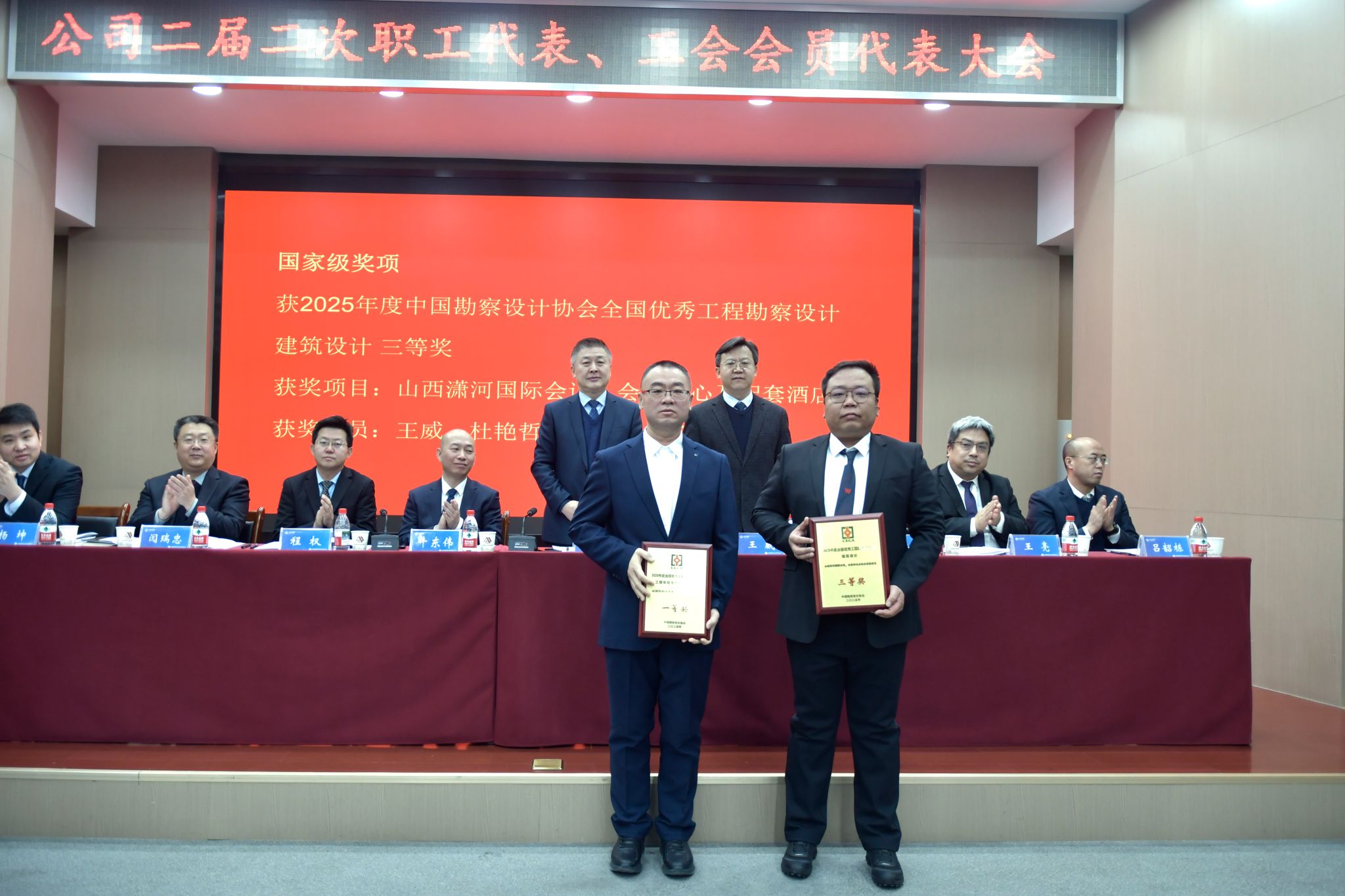 大会对公司2025年度突出贡献奖、优秀业绩奖、优秀勘察设计奖、先进集体、先进个人、优秀宣传员、先进工会小组、工会积极分子,以及获得国家级、省部级奖项的部门和人员进行了表彰。