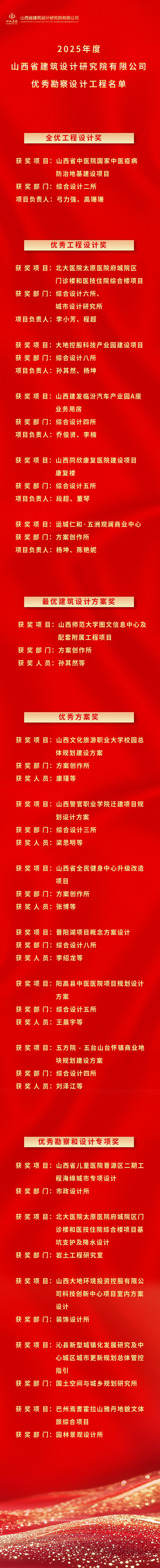 2025年度山西省建筑设计研究院有限公司优秀勘察设计工程名单