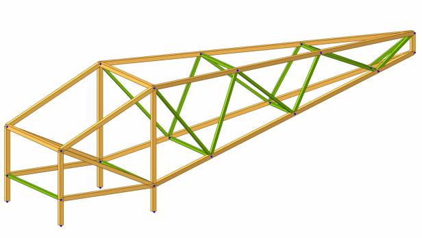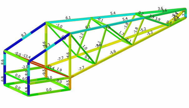 本次参赛作品采用四杆桁架结构,加载点位于悬臂端部,加载时,悬臂梁上弦杆与悬臂根部斜杆受拉,悬臂梁下弦杆受压。分析发现,悬挑梁根部高度、悬挑梁端部高度、腹杆数量对结构承载力和自重影响明显。为实现结构自重与承载力比值最优,探索了基于盈建科-GAMA程序的参数分析方法以优化设计。