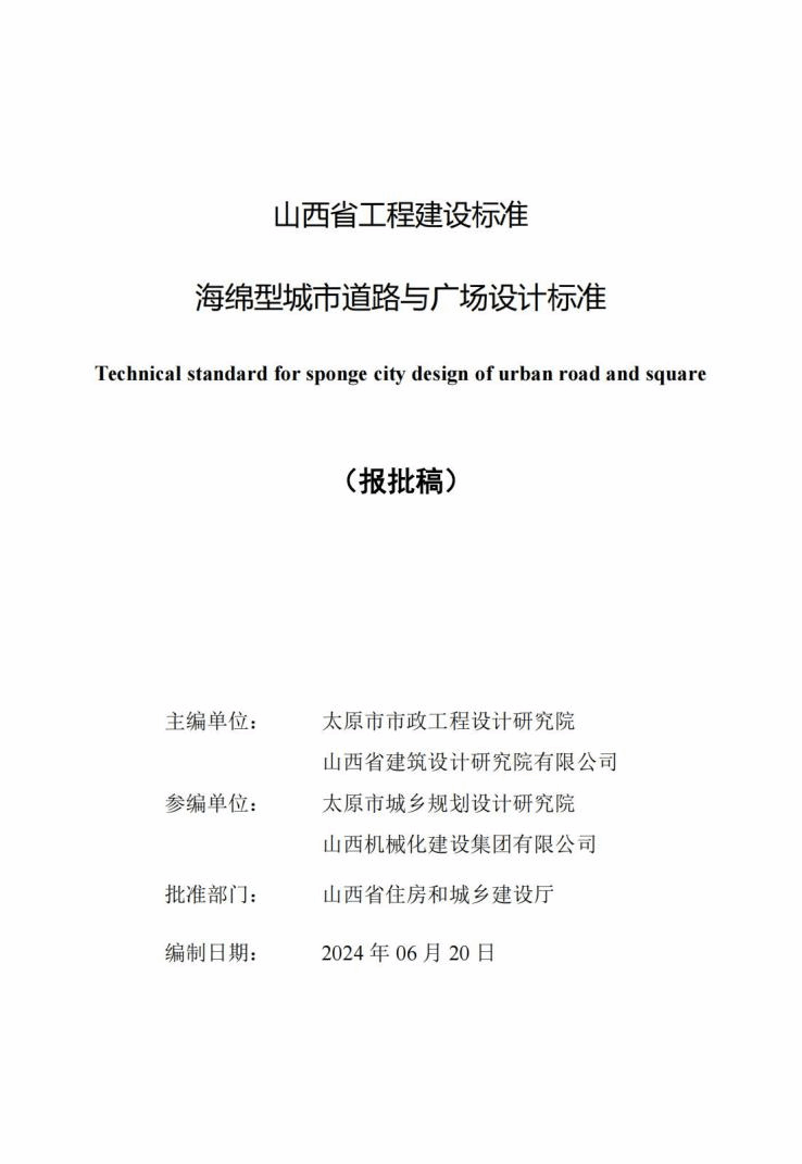 为推动山西省海绵型建筑与小区建设,实现水资源健康循环,促进水系统自我调节,最大程度维持水生态平衡、降低水资源消耗、减少水环境污染、保障水安全,满足居民生产生活需求,适应气候变化,使海绵城市建设做到技术先进、经济合理、安全可靠,我院市政设计所参与主编了《海绵型建筑与小区建设技术标准》和《海绵型道路与广场设计标准》,对各类建筑与小区、道路与广场的海绵城市项目规划、设计、工程建设与管理运营等内容进行了规范,并参与编制了《山西省海绵城市建设设计文件编制规定及技术审查要点(试行)》。