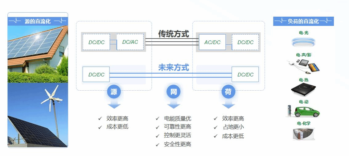 避免电量损失:日常生活用电为交流电,光伏发的电为直流电,传统光伏建筑需安装逆变器将直流电转变为交流电,转换过程会造成电量损失,而直流配电可避免这一问题,运行效率更好,切换简单且安全性较高。调节能力强:配套应用储能和柔性用电系统,建筑在用电上有15%—30%的调节能力。