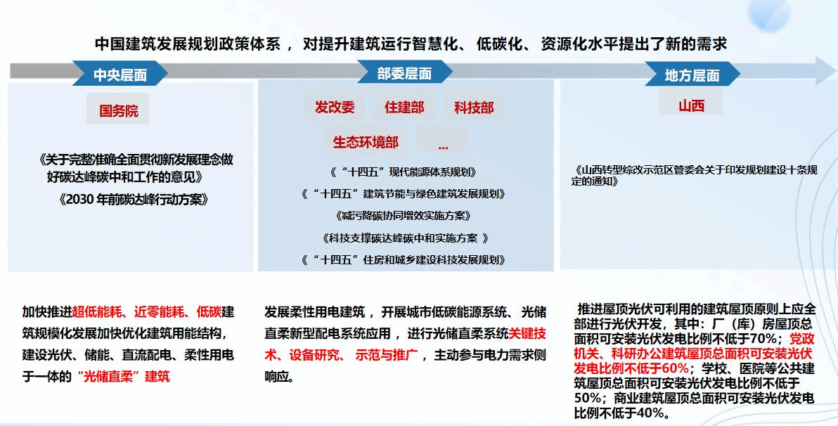 全球气候变化带来严峻挑战,国务院部委等发布的2023年前碳达峰行动方案大力推广光储直柔系统。集团所在综改区对光伏发电比例有高标准要求。我们决定在绿建示范园内引入光储直柔系统,以科技的力量推动绿色建筑的可持续发展。