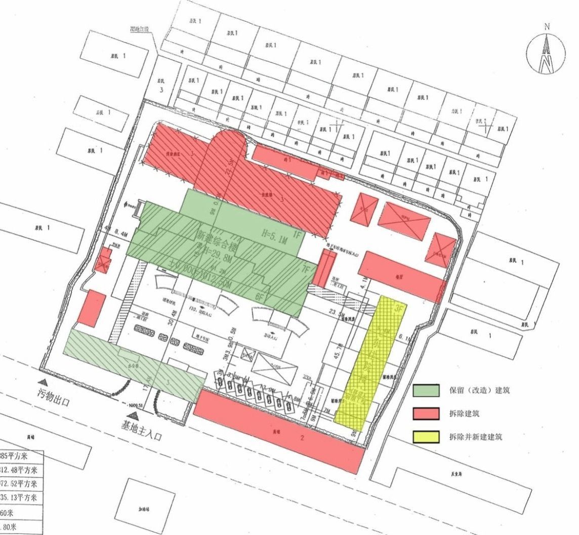 由于建设年代较长,标准及布局均无法满现代化医院的使用要求,功能由人民医院改为中医院,建筑内部硬件设施陈旧,建筑排布杂乱,建筑外立面保温及构件脱落,门窗不符合节能要求,部分楼栋为危房,院区内消防车道及消防设施不满足使用要求。