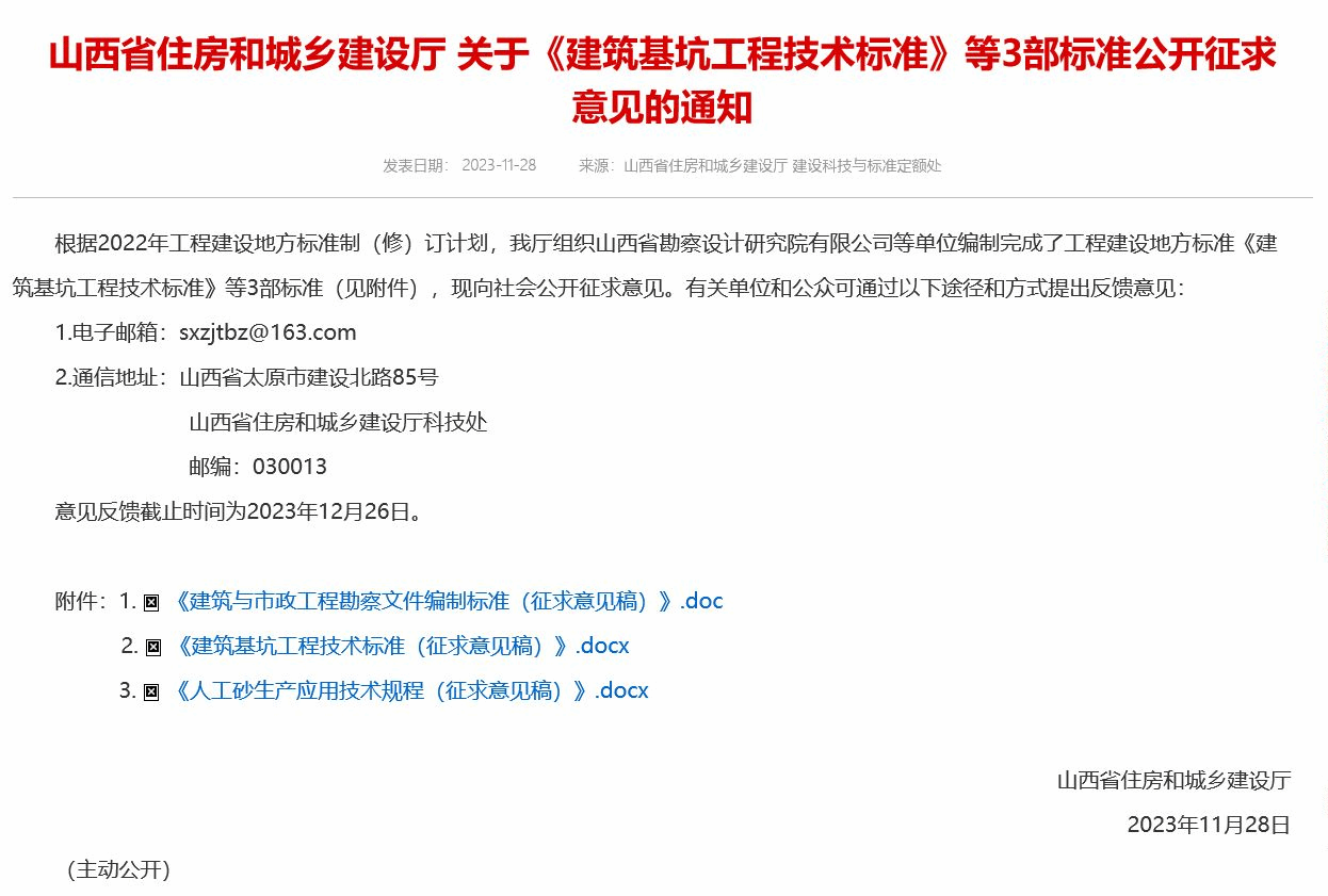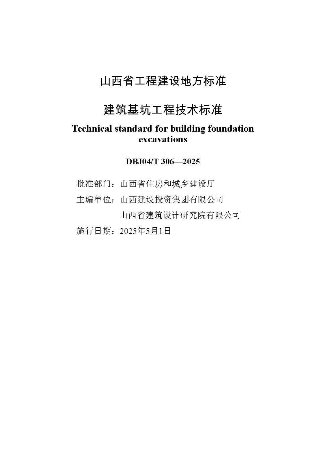 近日,山西省住房和城乡建设厅发布2025年3号公告,由山西建设投资集团有限公司及山西省建筑设计研究院有限公司牵头主编的编号为DBJ04/T306-2025的地方标准《建筑基坑工程技术标准》经批准颁布,自2025年5月1日起实施。