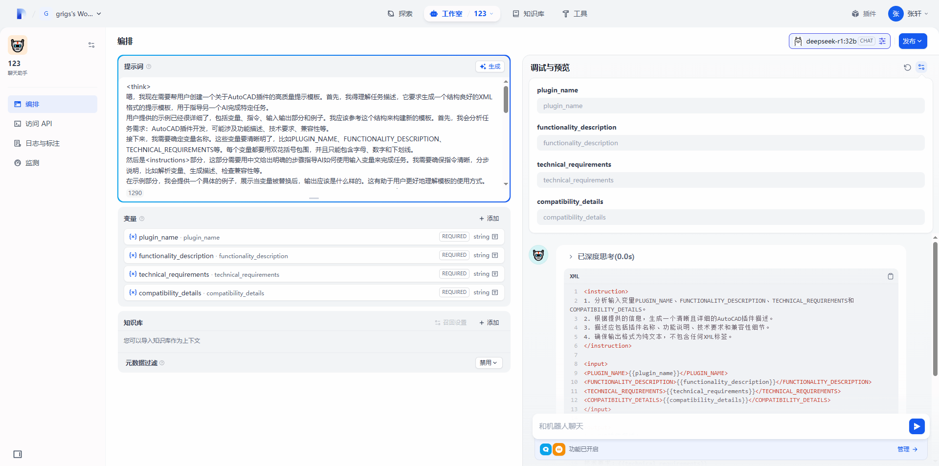 基于dify平台构建具备专业语境的智能体(Agent),通过搭建work_flow逐步工程化实现: