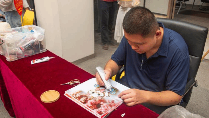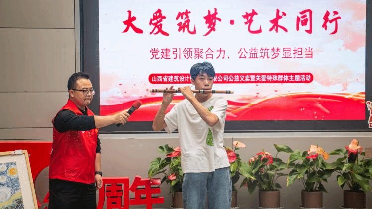 活动吸引了公司职工及周边群众的积极参与,更有不少爱心人士前来奉献爱心,现场气氛热烈而温馨。大家被作品中蕴含的真挚情感与顽强生命力所打动,纷纷慷慨解囊,用实际行动为特殊群体送去温暖与希望。来自山西省脑瘫康复医院的少年展示了非遗作品掐丝珐琅画的制作过程,令观众得以近距离、直观地感受其丰富的精神世界、坚韧的生命力与独特的创造力,作品无声,其呈现却有力而动人。另一名少年以横笛倾情演绎《隐形的翅膀》,悠扬的旋律中满是对未来的憧憬,感染了在场的每一个人。
