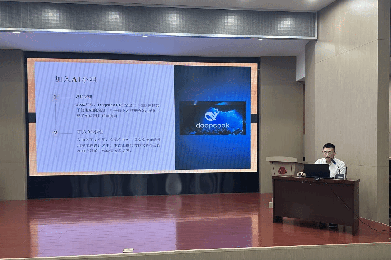 上图为王世路给全院电气专业人员做关于“AI工具在电气设计中的应用”的专题报告