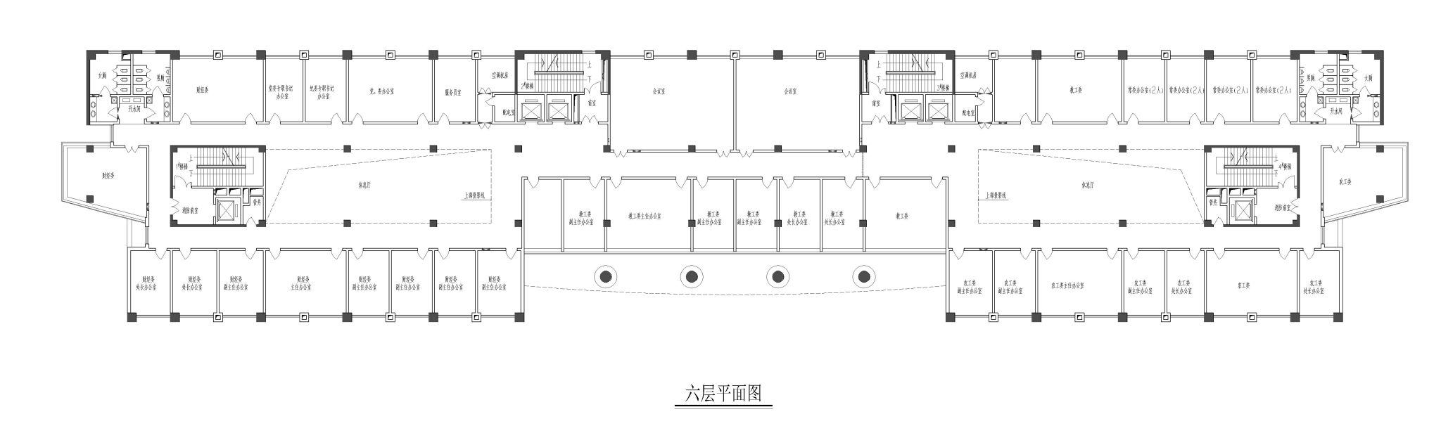 该项目建设用地东西面宽大、南北纵深小,规划建筑东西长120米、南北23.4米。其平面采用双廊直线平面与弧线玻璃中庭相互穿插的构图设计,强化了建筑体量,产生庄重、稳定的建筑体形,同时也保证了建筑主体与城市道路空间距离,形成了较为友好的城市界面关系。