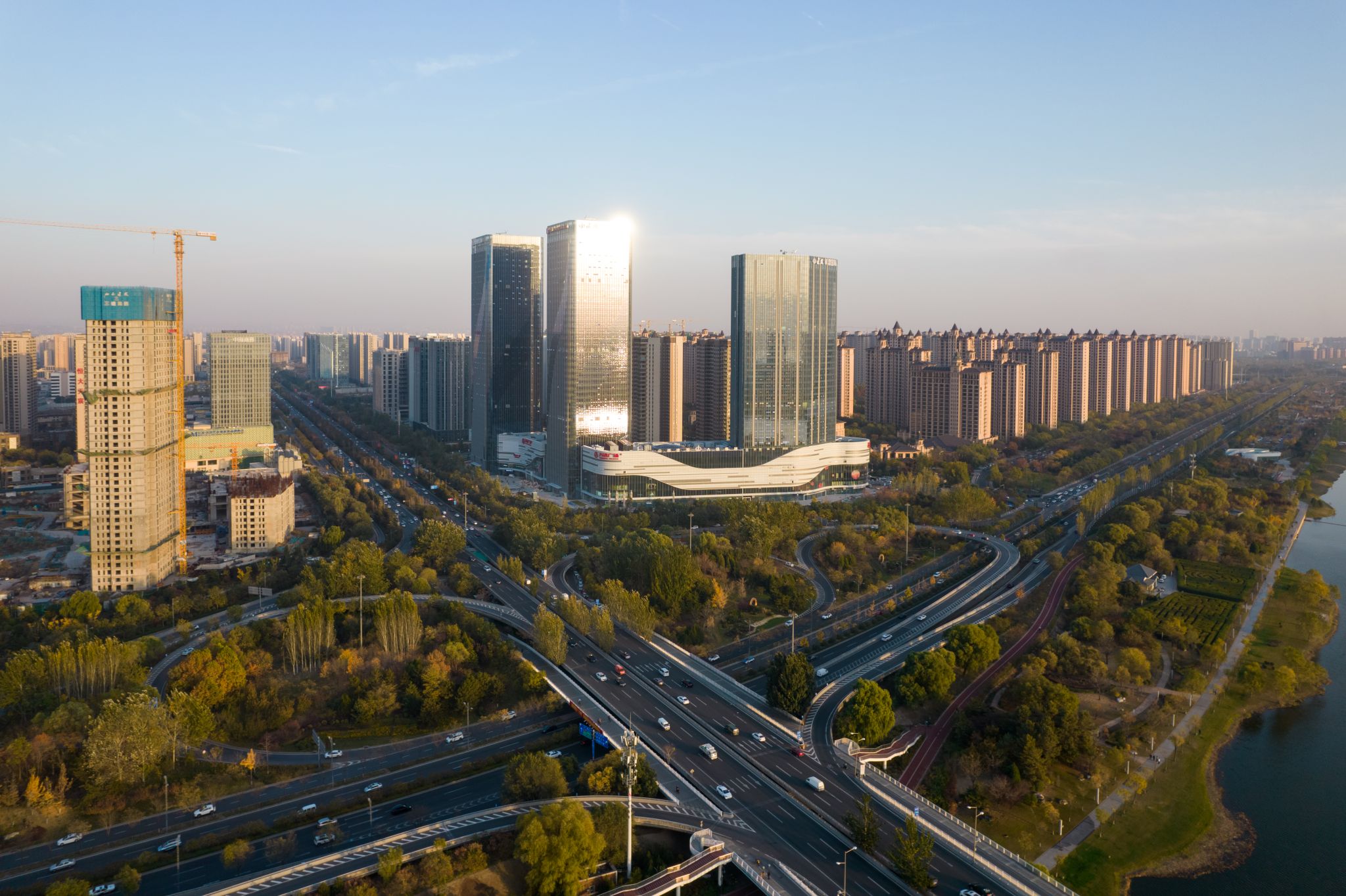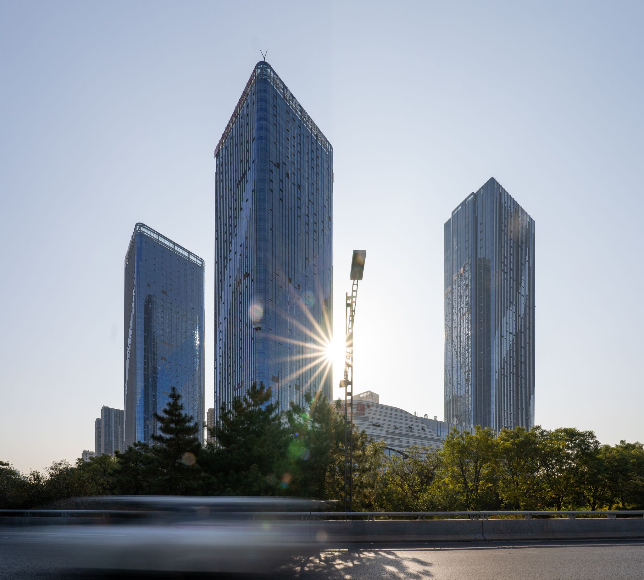 合作单位:华图山鼎设计股份有限公司 建投祥澐国际位于山西省太原市,龙城大街和滨河东路的交汇处东南角,北侧为龙城大街,西侧为滨河东路连接龙城大街匝道。南侧、东侧均为规划道路。 项目主要功能为办公、酒店及商业配套用房,建筑外立面整体简洁大气,室内空间延续了外立面的材料质感,在实现建筑内部和外部之间体量感和气质延续性的同时,不着痕迹地将建筑体与室内环境协调统一起来,将建筑美感延伸到室内,在感官体验上使人更觉开阔明朗、沉稳大气。 该项目共计规划三幢超高层建筑,包含东、西、南三座写字楼,是集办公、商业、酒店等于一体的超高层Hills垂直综合体项目。规划总建筑面积438374.42平方米(其中地上建筑面积为299120.50平方米,地下建筑面积为139372.56平方米),其中西塔楼、东塔楼地上均为41层,建筑高度184米;南塔楼地上36层,紧邻汾河畔,裙房设置商业空间。楼栋外立面LOW-E玻璃幕墙全覆盖,彰显入驻企业高端品牌形象,构建繁华之中舒适自然的商务空间,擎领太原商务新发展。