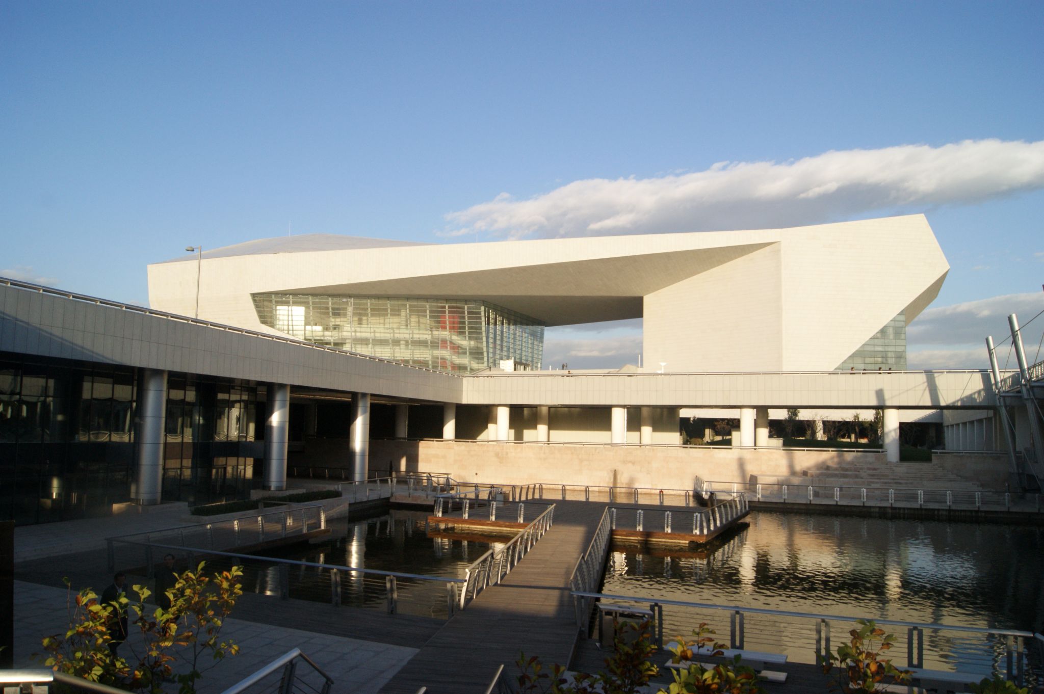 山西大剧院位于山西省太原市,长风商务区建筑组群中的中心建筑,位于东西向城市主轴线上,其向汾河敞开的特殊位置决定了她既是视觉的焦点又必须是通透的,使景观得以延伸。她与绿岛其它文化建筑一起形成有秩序的空间围合,使其相互之间拥有既统一又富有变化的视觉关系,‘门’的构思,其造型既拥有现代雕塑般的力度,又如同山西古建筑那么舒展大度,以神似的方式,现代的手法象征着山西凝重渊远的文化。她是一扇向城市敞开的艺术之门,引导人们进入文化的殿堂,是市民共享的公共活动舞台。她也是一座城市之门。