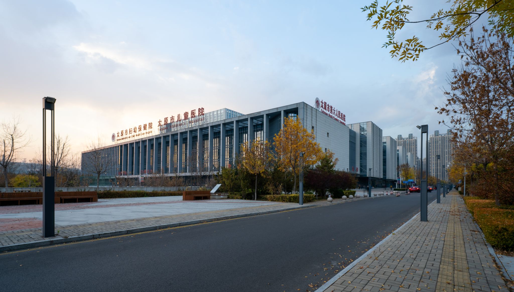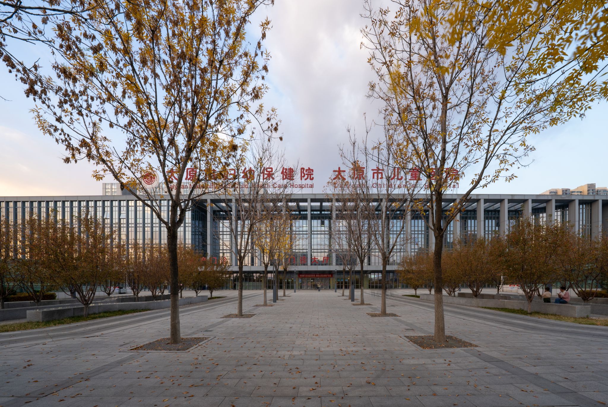 设计采用重复单元的建筑处理,具有强烈的秩序感,外立面采用白色石材幕墙和局部玻璃幕墙,简洁的线条和硬质材料的组合运用,构筑了现代感强烈的医疗建筑形象,实现形式与功能的统一。沿医院街中庭的绿化,形成了花园式医院,保持了城市绿化的延续性,为患者就诊提供良好的就医环境,也为城市提供良好的景观效果。