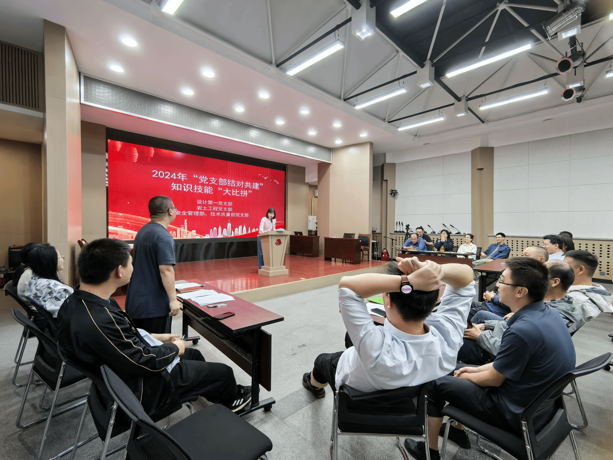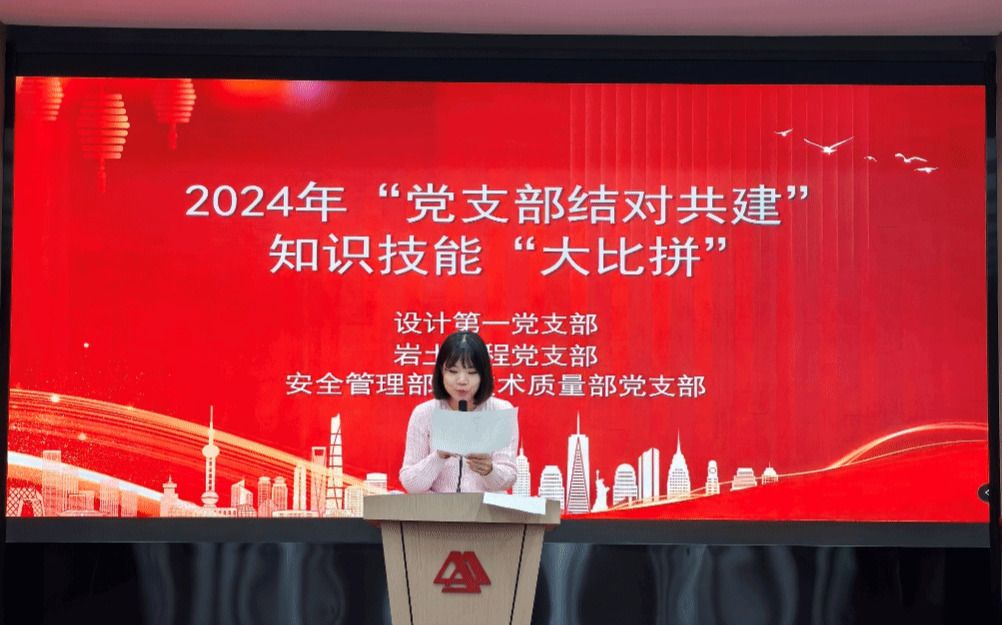 2024年9月26日,设计第一党支部、岩土工程党支部、安全管理部技术质量部党支部联合组织,开展了主题为“知识技能‘大比拼’”的支部共建活动,公司副总经理程权及支部全体党员参加了此次活动。