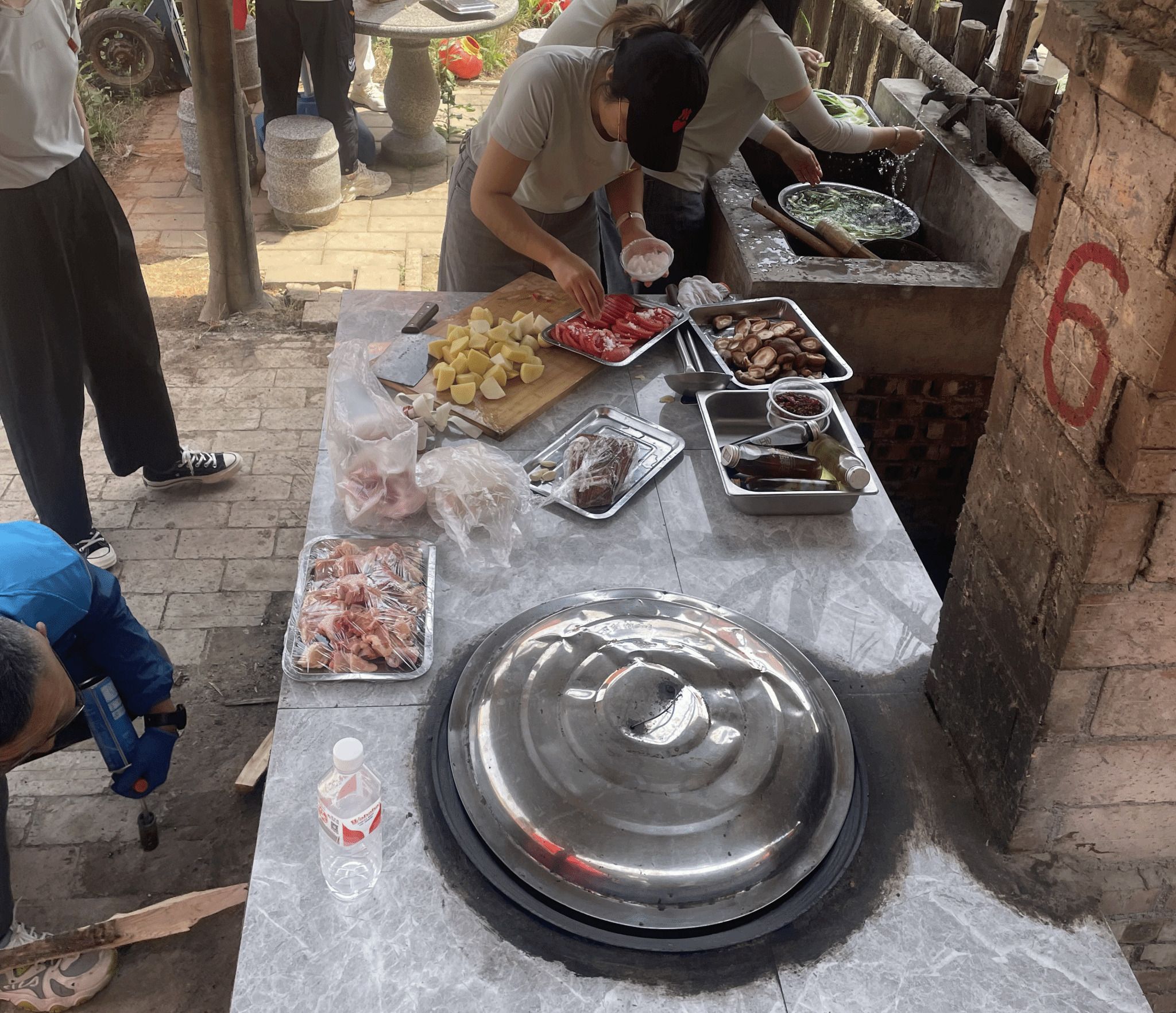 沉浸式体验“埋锅造饭”,大家亲自动手、生火做饭,每一名“战士”都投入其中,柴火正旺,炊烟缭绕、现场气氛浓烈。