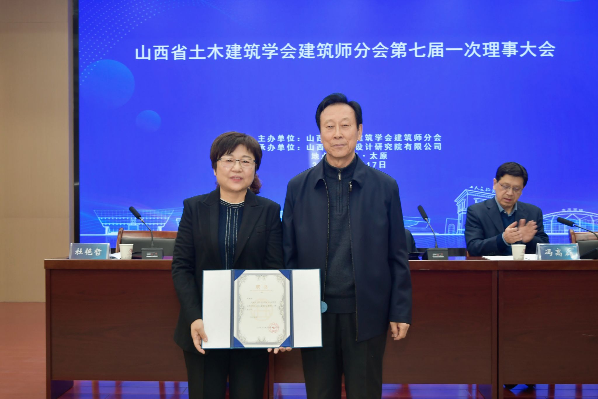 山西省土木建筑学会理事长王学章、建筑师分会新任理事长杜艳哲为建筑师分会新任副理事长颁发聘书