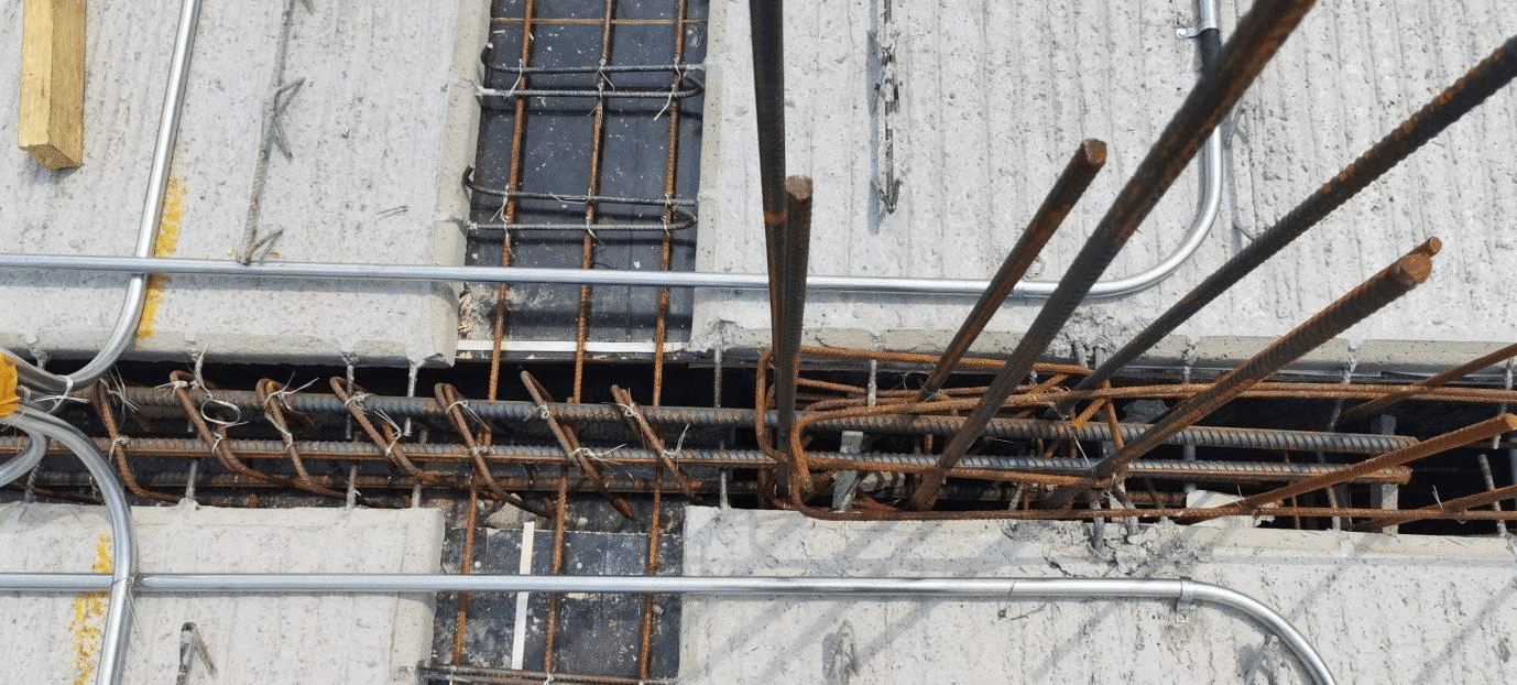 3.预制板现浇段存在预留钢筋不对位的情况,导致钢筋无法正常搭接,影响现浇段与预制段的整体连接性能。建议调整预制板的安装顺序,并根据现场实际尺寸对“胡子筋”进行适度弯折以确保钢筋能够顺利搭接。