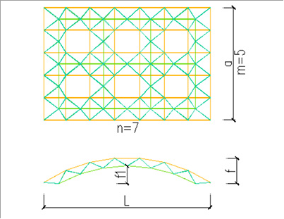 综合考量竞赛要求与实际制作条件,经济性是关键因素之一,3D打印质量也需重点关注。圆柱形网壳轻盈的特点,不仅节省材料成本,降低制作难度,还契合了竞赛对模型质量的潜在要求;而球面网壳虽刚度优越,但质量较大,可能增加制作与打印负担。经反复权衡,我们最终选定双层抽空正放四角锥圆柱形网壳作为竞赛模型,以期在满足结构性能的同时,实现经济性与制作可行性的最佳平衡。