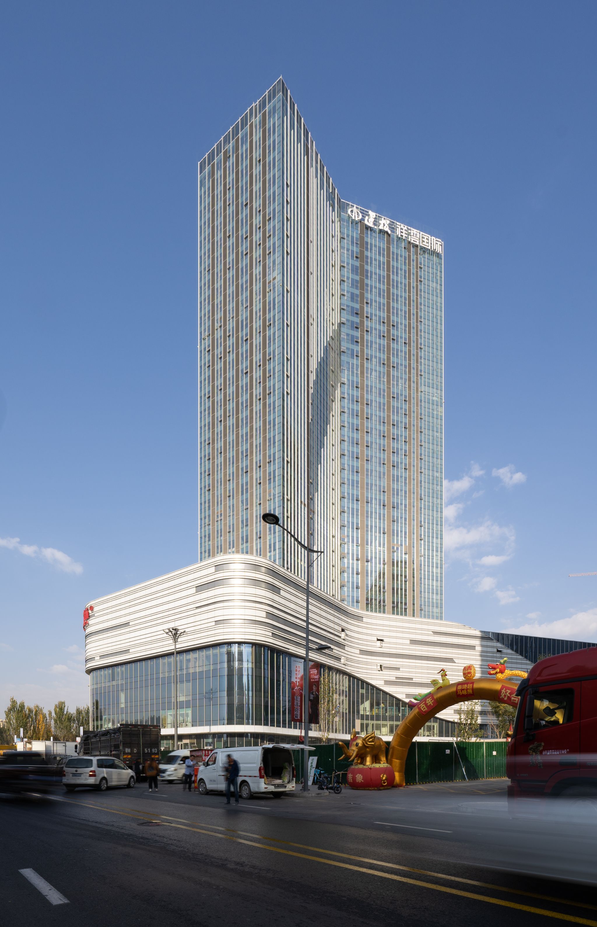 合作单位:华图山鼎设计股份有限公司 建投祥澐国际位于山西省太原市,龙城大街和滨河东路的交汇处东南角,北侧为龙城大街,西侧为滨河东路连接龙城大街匝道。南侧、东侧均为规划道路。 项目主要功能为办公、酒店及商业配套用房,建筑外立面整体简洁大气,室内空间延续了外立面的材料质感,在实现建筑内部和外部之间体量感和气质延续性的同时,不着痕迹地将建筑体与室内环境协调统一起来,将建筑美感延伸到室内,在感官体验上使人更觉开阔明朗、沉稳大气。 该项目共计规划三幢超高层建筑,包含东、西、南三座写字楼,是集办公、商业、酒店等于一体的超高层Hills垂直综合体项目。规划总建筑面积438374.42平方米(其中地上建筑面积为299120.50平方米,地下建筑面积为139372.56平方米),其中西塔楼、东塔楼地上均为41层,建筑高度184米;南塔楼地上36层,紧邻汾河畔,裙房设置商业空间。楼栋外立面LOW-E玻璃幕墙全覆盖,彰显入驻企业高端品牌形象,构建繁华之中舒适自然的商务空间,擎领太原商务新发展。